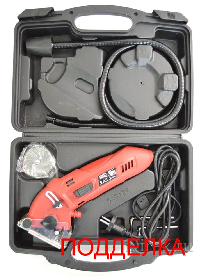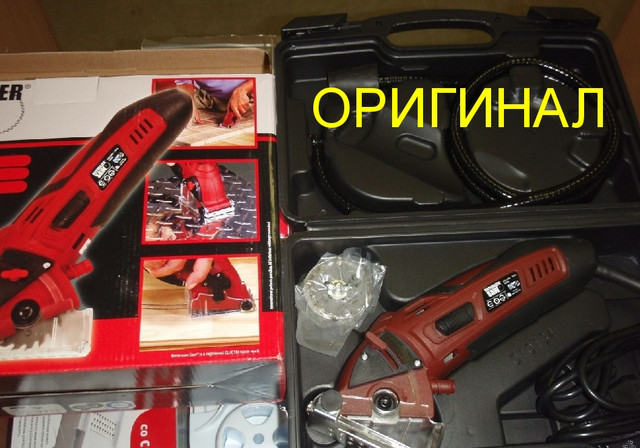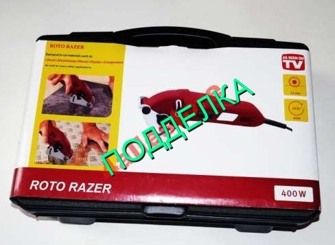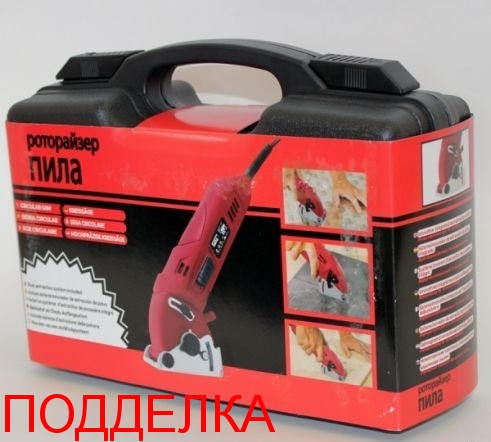 На оригінальній пилі на бічній частині написано Rotorazer Saw, а на підробці Роторайзер Пила. Також є велика різниця в якості пластику і складання на користь оригіналу. В підробці нижче якість дисків і МЕНША ПОТУЖНІСТЬ ЕЛЕКТРОДВИГУНА.